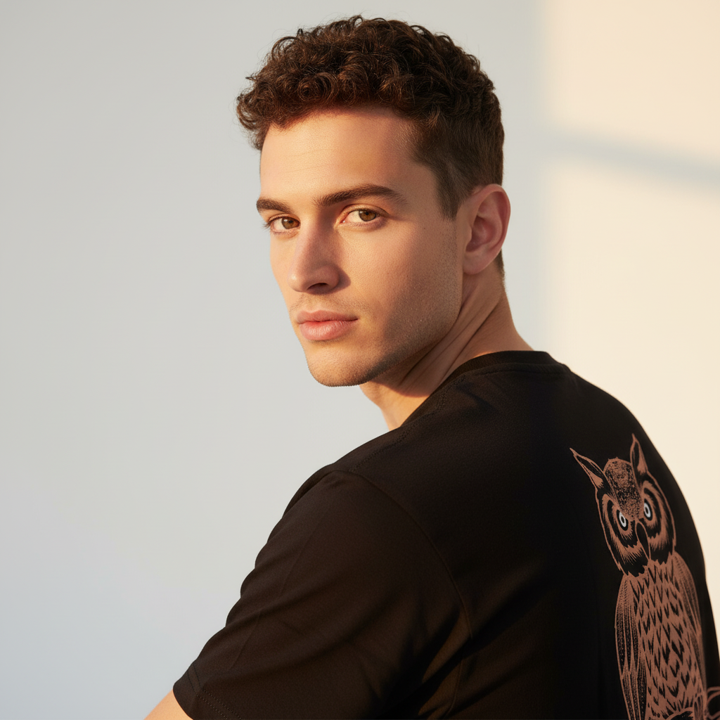 Detailed Back Print: Large, intricate owl artwork adds a bold and unique touch.